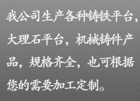 全意鑄鐵平臺(tái)平板廠家專注生產(chǎn)T型槽鑄鐵平臺(tái),大理石氣浮實(shí)驗(yàn)石平臺(tái),han接鑄鐵平臺(tái),裝配鑄鐵平臺(tái),檢測(cè)測(cè)量大理石平臺(tái),試驗(yàn)鑄鐵平臺(tái),測(cè)量大理石平板,T型槽平臺(tái),電機(jī)試驗(yàn)平臺(tái),三坐標(biāo)測(cè)量平臺(tái)等鑄鐵平板來圖加工定做業(yè)務(wù),以合理的價(jià)格,專注的技術(shù)服務(wù)于國內(nèi)外客戶,互利合作,共同發(fā)展!公司位于河北交河開發(fā)區(qū),京滬鐵路、104國道、106國道、京福高速公路橫穿而過,與我國的兩大直轄市北京、天津近在咫尺,地理位置優(yōu)越,交通非常便利。我公司本著以誠納客”“嚴(yán)把質(zhì)量關(guān)”“價(jià)格優(yōu)惠”“用戶至上的原則,幾十年兢兢業(yè)業(yè),受到用戶的一致好評(píng)!