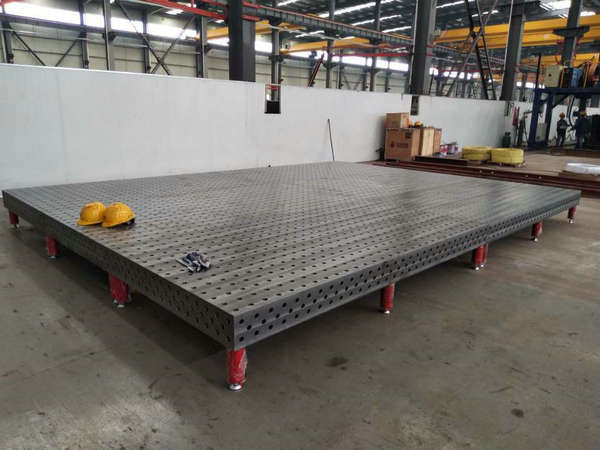 根據客戶要求,在平臺的兩直角邊上面可以刻畫毫米標度尺臺面采用網格孔形式。平臺尺寸最大可達6000x2200mm,也可以根據實際需要來定制。它不僅可以作為焊接平臺使用,也可以作為裝配平臺、檢測平臺、機床加工平臺等。