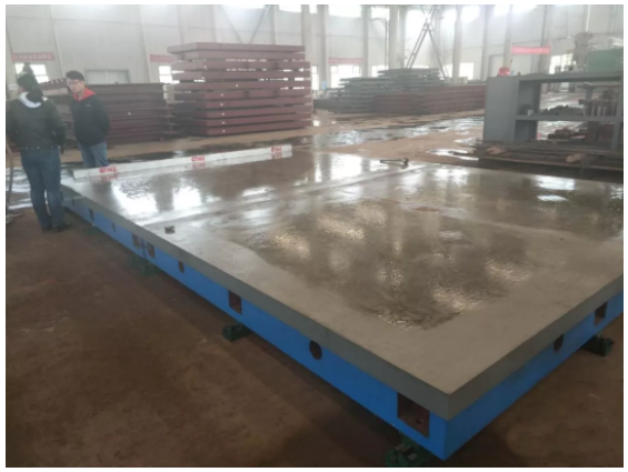 在人防門框和門扇鋼框在制作流程中及雙扇門在裝配過程中,由于受到生產工藝、場地限制等原因,需要使用鑄鐵平臺。一般使用的鑄鐵平臺為4mX6m,如有特殊人防門型號,還需要定制不同大小的鑄鐵平臺。