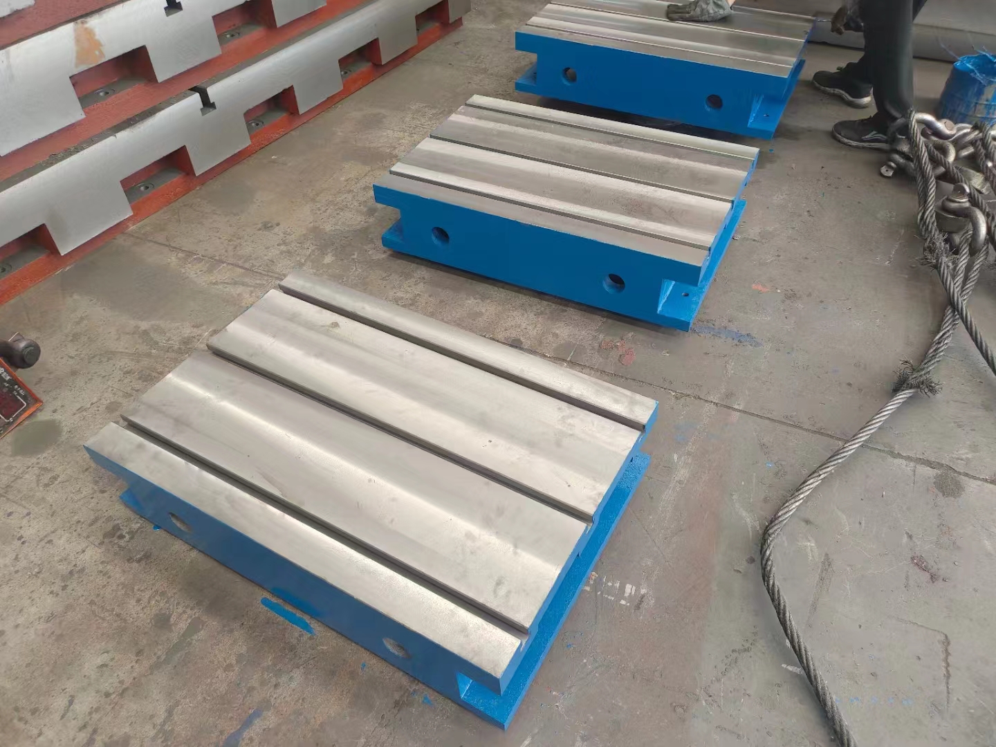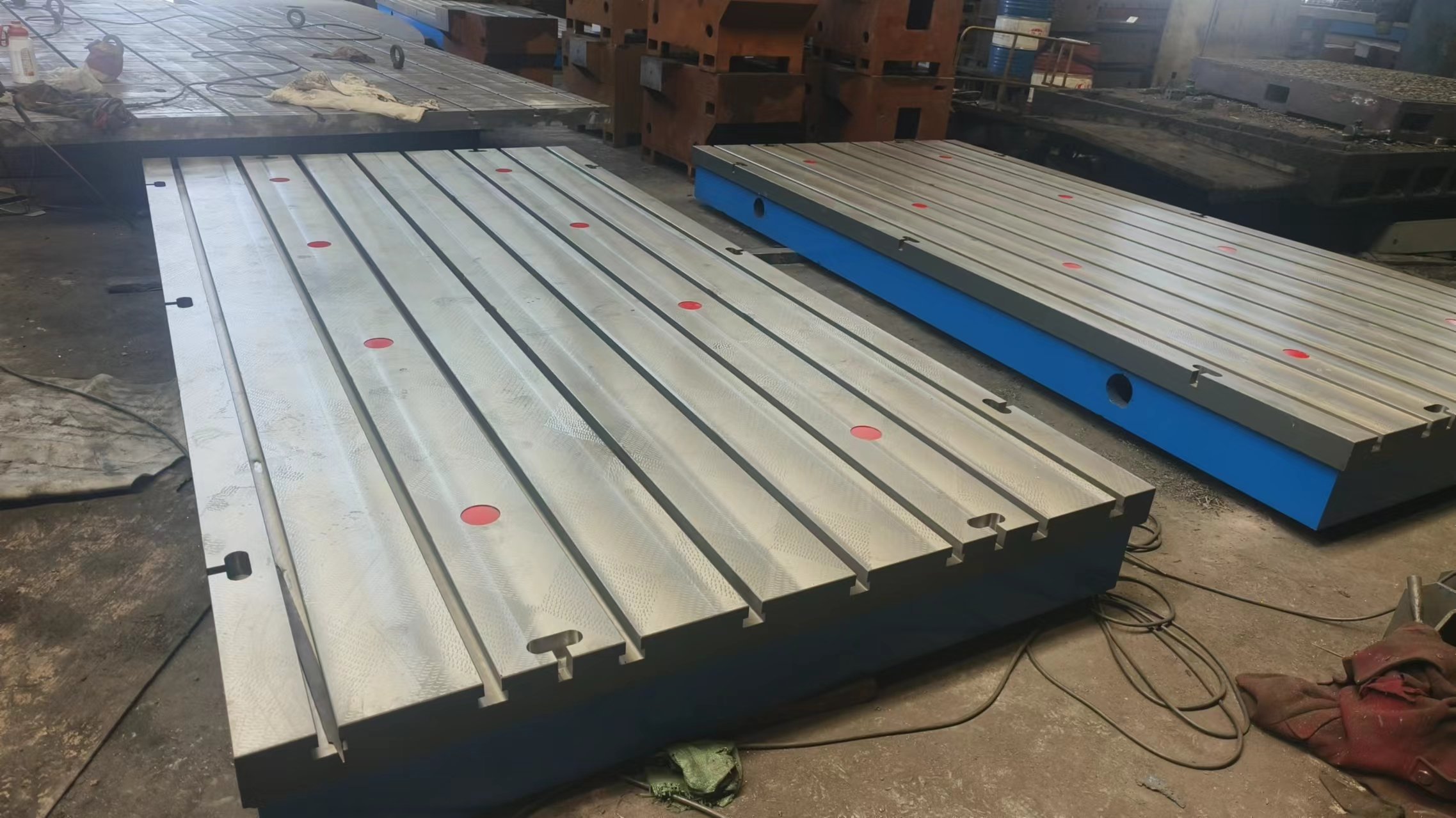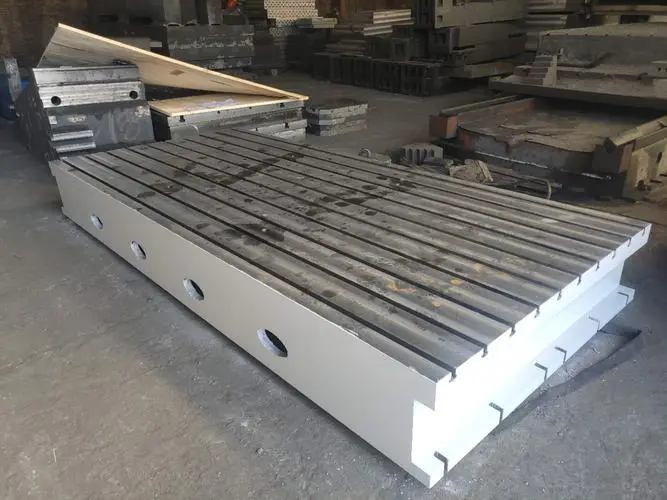機床工作臺,機床輔助工作臺,龍門機床工作臺,鏜銑床工作臺都屬于機床加工工作臺,機床工作臺特性:上面有孔和T型槽,用來固定工件,和清理加工時產(chǎn)生的鐵屑。